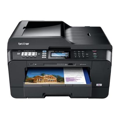 Professional Series MFC-J6910dw will help your business thrive with the versatility of duplex printing, copying and scanning documents up to legal-size. You can also use this printer to create two-sided documents up to 11in. x 17in. in-house. The 11in. x 17in. scan glass lets you easily scan large documents in one pass. Fast print speeds include 35 black/white pages per minute and 27 color pages per minute. Print with high resolution up to 6000 x 1200 dpi. Easy-to-set-up wireless (802.11b/g/n) or wired Ethernet network with embedded web support connects to others on a network. Standard interfaces also include Hi-Speed USB 2.0, Pictbridge, media card slots and USB flash memory drive. The 3.3in. Touch-screen color LCD features interactive and easy-to-use menu navigation. Dual paper trays (up to 250 sheets each) offer a total capacity of 500 sheets. Energy Star qualified printer also features 35-page automatic document feeder, 33.6Kbps fax modem, and color scanning with up to 19200 x 19200 dpi. Brother MFC-J6910DW Inkjet Multifunction Printer - Color - Plain Paper Print - Desktop is one of many Inkjet All-In-Ones available through Office Depot. Made by Brother.